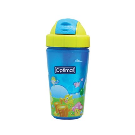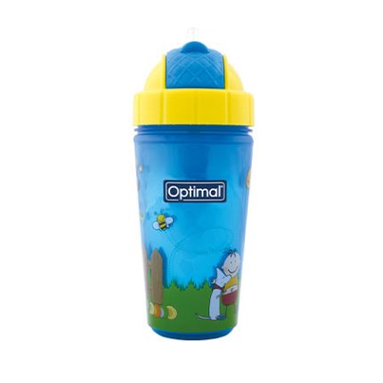 A colorful non-spill cup (350ML) with straw for water or juice. Equipped with a lid to keep the liquid safe from contamination.