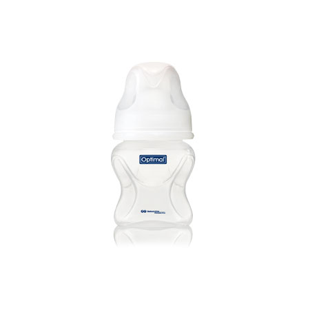 The narrow neck of the bottle complements the round nipple and offers practical advantages.