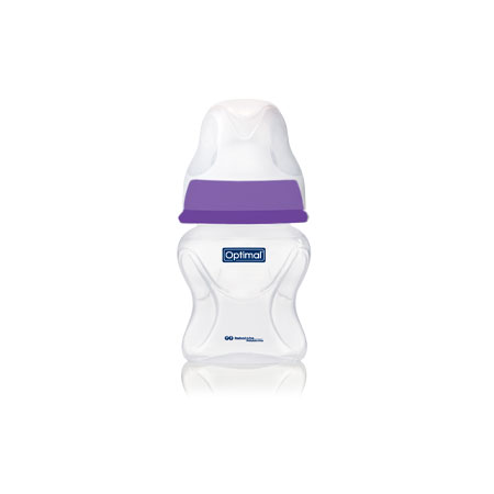 A non-toxic baby water bottle (0m+) with a round nipple and a narrow neck. Dishwasher-safe/ Sterilizer-safe.