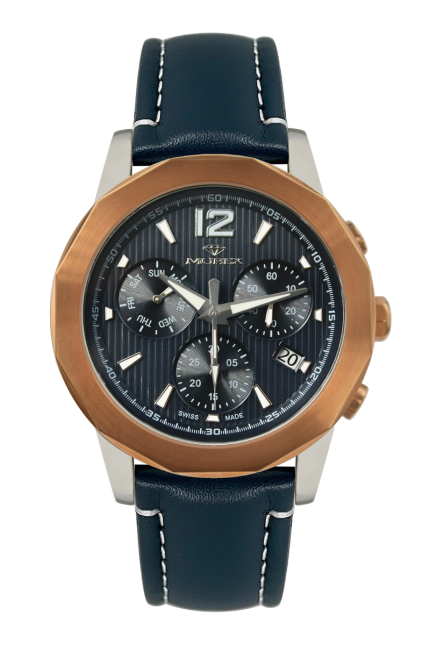 Swiss Made Watch, Genuine leather, saphire coated glass, deployant buckle, stainless steel, swiss movement